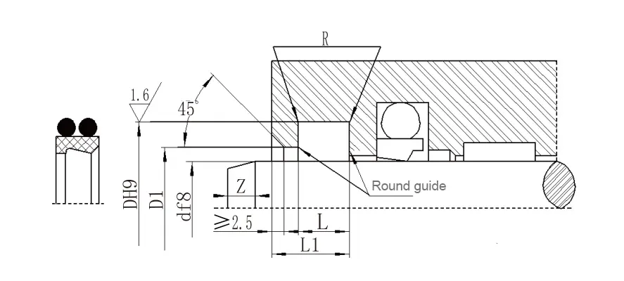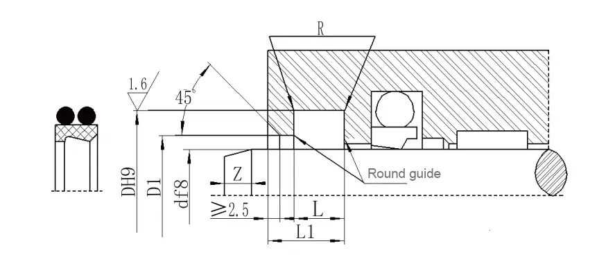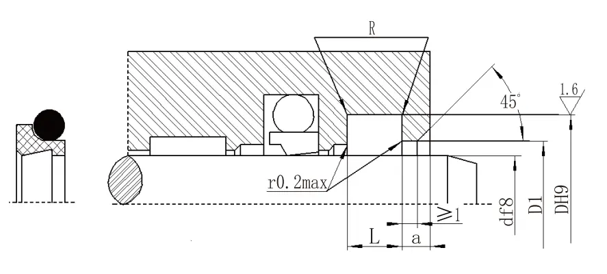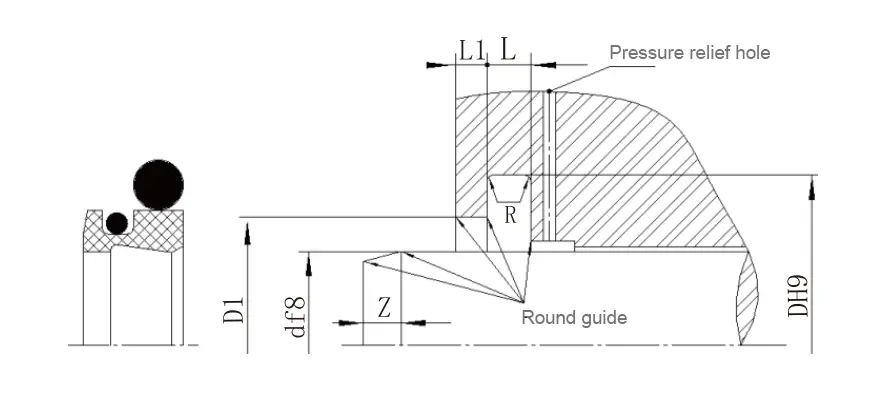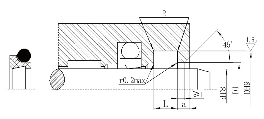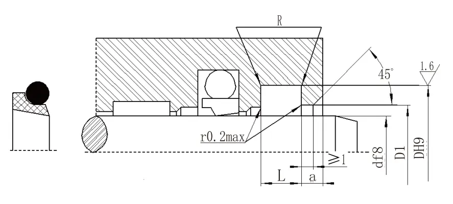 ရိုးအချင်းအကွာအဝေး f8 | groove အချင်း DH9 | အဆင့်အချင်း d1 h11 | groove အကျယ် L+0.2 |