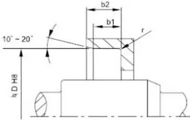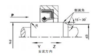 2. Rotating Shaft နှင့် Grooves ဒီဇိုင်း- shaft မျက်နှာပြင်သည် ချောမွေ့ပြီး burr ကင်းရမည်။ Spiral machining marks များသည် pumping effect ကို ဖန်တီးနိုင်ပြီး ယိုစိမ့်မှုကို ဖြစ်စေသည်။ ဆီတံဆိပ်တပ်ဆင်သည့်နေရာကို Ra0.1-0.5µm ၏မျက်နှာပြင်ကြမ်းတမ်းမှုအဖြစ် မြေသားထားရန် အကြံပြုထားပြီး အရှိန်တိုးလာသည်နှင့်အမျှ ပိုမိုချောမွေ့လာစေရန် အကြံပြုထားသည်။ တပ်ဆင်ခြင်းနှင့် ဖြုတ်တပ်ရလွယ်ကူစေရန်၊ ရှပ်နှင့် grooves များကို chamfers သို့မဟုတ် rounded edges များဖြင့် ဒီဇိုင်းထုတ်ရမည်ဖြစ်ပြီး ပုံ 1 နှင့် 2 ကိုကြည့်ပါ။