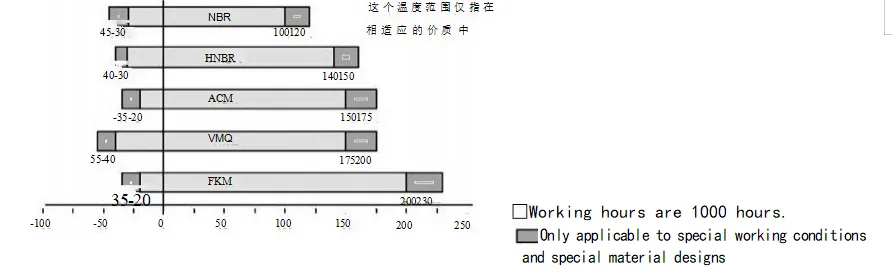 တံဆိပ်ခတ်ခြင်းအကျိုးသက်ရောက်မှုကို ထိခိုက်စေသောအချက်များစွာရှိပါသည်။ ဆီတံဆိပ်ကိုယ်တိုင်အပြင်၊ ၎င်း၏ပစ္စည်းနှင့်ဖွဲ့စည်းပုံကဲ့သို့၊ အလတ်စား၊ အပူချိန်၊ ဖိအား၊ ချောဆီ၊ အမြန်နှုန်း၊ နှင့် မျက်နှာပြင်ကြမ်းတမ်းခြင်းကဲ့သို့သော အခြားအချက်များသည် တံဆိပ်ခတ်ခြင်းအကျိုးသက်ရောက်မှုကို တိုက်ရိုက်သက်ရောက်စေပြီး အဆိုပါအချက်များသည် တစ်ခုနှင့်တစ်ခု အပြန်အလှန်သက်ရောက်မှုရှိတတ်သည်။ အောက်ပါဇယားများသည် သုံးစွဲသူအကိုးအကားအတွက်သာဖြစ်သည်။